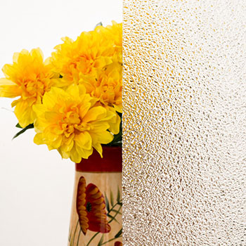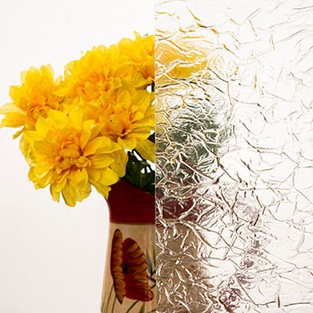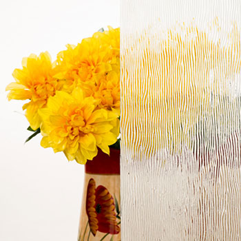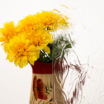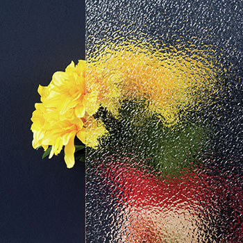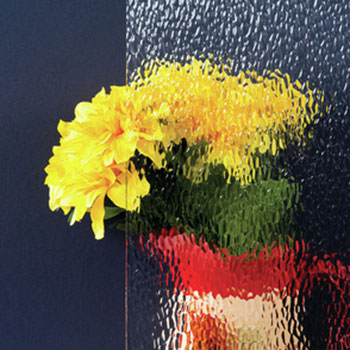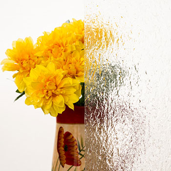 Textured glass features patterns such as rain, reeded, ripple, or geometric designs pressed or etched onto one side. It diffuses light while obscuring clear views, blending beauty with function