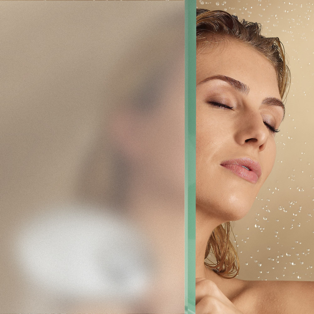 We offer clear, low-iron, frosted, rain-textured, tinted, bronze, gray, and etched glass options for showers, railings, and partitions.